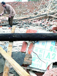 上午10時許,記者在爆炸現場看到,一個6平方米的火藥中轉車間已被夷為平地,瓦礫堆上散落著幾個燒焦的藥桶,附近的樹枝上掛著瓦礫碎片。所幸的是,距中轉車間20多米外的一個制造車間未受殃及,里面的工人安然無恙。