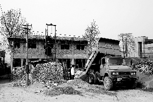 昨日,這里已經(jīng)看不出村落的原貌,取而代之的是正在建設(shè)中的一座座高約4米的二層小樓,砂石、水泥、紅磚堆積在建筑周圍,工人們正在樓體內(nèi)外忙碌著。他們說(shuō)受雇于房東,并不清楚原地拆建的原因。