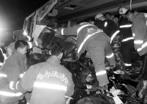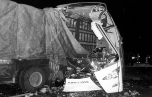 2008年11月15日16時40分,哈同公路哈爾濱依蘭段,一輛超載的金龍客車在上坡路側翻,造成11人死亡、39人受傷。