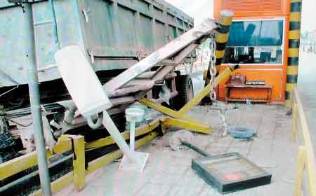 拖拉機失控連撞兩收費亭 兩名收費員被撞傷(圖)