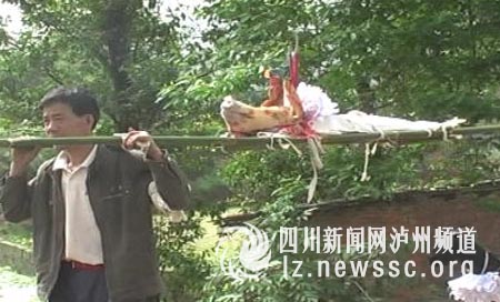 記者好奇地詢問了其中一位參加喪禮游行的村民。該村民說,“這是喪事,不過不是一般的喪事,而是喜喪。這是他們當地的習俗,只要是村里德高望重、壽終正寢的老人就可以辦這樣的喪事,意為圓圓滿滿地結束了一生。今天是喪禮的第二天,現在進行的游行叫做“揚名”,用意是要讓沿途的人都知道老人壽終的消息,同時也讓人們知道老人的兒女是何等孝順,這樣喜喪才能風風光光。游行中所抬的紙轎子叫做‘靈轎’,當地風俗認為可以將壽終者的靈魂通過法式寄放在這樣的轎子里。待游行結束,就要開始進行‘飄燈’儀式了,將紙燈放入河中,隨波漂流,以此寄托對壽終者的思念。”