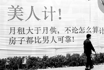 “寧可相信世上有鬼,也不能相信男人那張嘴。”這句眾女傳閱調侃男性的話語,近日卻被變相地搬上臺面,成為商家奪人眼球的廣告語。“月租大于月供,不論怎么算計,房子都比男人可靠!”近日,棉紡東路某房產商的一條廣告引發了一場關于廣告與男性尊嚴的爭論。