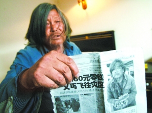 他,一名南京街頭的普通乞丐;他,曾在地震期間捐款三次感動(dòng)無(wú)數(shù)國(guó)人;他,曾坐著頭等艙作為貴賓出席新加坡華裔商人在震區(qū)希望小學(xué)的落成典禮,他就是被人親切稱(chēng)為“義丐”的67歲老乞丐徐超。昨日,一位不愿透露姓名的男子將徐超接來(lái)北京,打算為其安排住處、做體檢并協(xié)助其在北京找工作安頓下來(lái)。