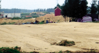 霞坡大村一康姓村民說,早在2006年原村民小組長在任時,曾有外地人提出在該村邊采礦,遭到村民的反對,只采了幾天就停工了。去年,新一屆村干部上任后,有的村干部同意將地租給他人采礦。從今年3月底開始,一些不法人員進入該村離大海約1.5公里處的村邊林地,砍毀了大片茂盛的速生林,架起采礦機械,搭起簡易工棚,大肆抽取沙土里面含有鈦等金屬的黑、黃色礦砂。自此以后,原先保護良好的生態環境遭受到了嚴重破壞,大片的沙灘地被挖塌了,村邊林地被挖成大深潭,對孩子們的安全構成了很大的威脅。