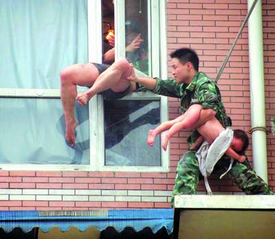 記者了解到,在二次解救行動(dòng)前,制定了詳細(xì)的營(yíng)救方案:先由警方安排人員到8樓房間內(nèi)談判,將男子的注意力吸引到室內(nèi);同時(shí),消防戰(zhàn)士從9樓繩降到8樓平臺(tái),趁其不備將娃娃奪過(guò)來(lái);在奪小孩的同時(shí),以吼聲為信號(hào),以便警察沖進(jìn)去制服男子。