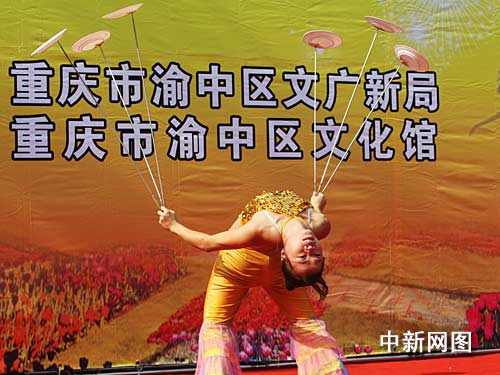 中新網重慶9月29日電 (孟幻 郭晉嘉)舞蹈、魔術、笛子獨奏……29日,來自重慶市渝中區12個街道的上百名外來務工人員獻藝,參加當地舉辦的外來務工人員才藝大賽,迎接新中國60華誕。
