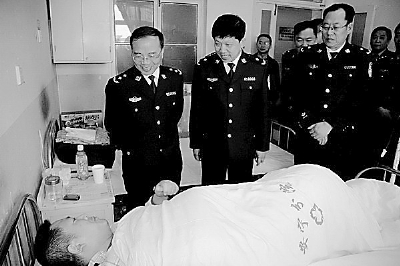 10月16日,省公安廳副廳長、市公安局局長王幸等領導專程趕往醫院,親切看望和慰問了在抓捕毒販中英勇負傷的禁毒大隊大隊長徐光明。在病房,王幸對徐光明、李剛、劉紅生、王麗萍4名民警的行為給予贊揚,并囑咐他們好好養傷,爭取早日康復。