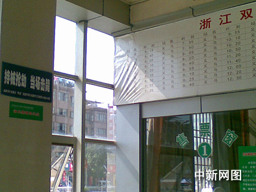標語是用鐵皮或是鋁皮制作,用釘子固定在售票廳的墻上。標語上顯示其宣傳單位是“永康市打擊‘兩搶’犯罪專項行動宣傳工作領導小組辦公室”。 記者不知它是什么時候被貼上去的,但估計這標語不同于紙質標語或是布質橫幅,它是要被貼很長一段時間的。