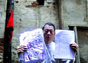 2月26日,嘉禾金雞嶺村村民廖永固拿著血鉛超標(biāo)的兒童名單和向上級(jí)政府反映情況的材料。