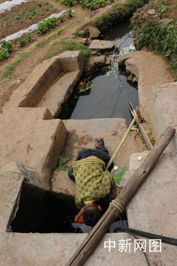 小劉凱告訴記者,受持續干旱缺水影響,他到村莊到遠處取水已經有一周時間了。由于供村里食用的水源在慢慢減少,每天中午放學后,劉凱都要擔著自己的“水桶”到遠地“打水”,往返需要近半個多小時。據記者上前仔細察看,小劉凱取水之地作為村里為數不多的水源之一,渾濁的水面難以見底,水源質量令人擔憂。