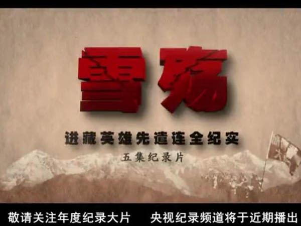《雪殤·進藏英雄先遣連全紀實》4月16日起在中央電視臺第九頻道(紀錄頻道)播出,中國新聞網為本片網絡首播媒體。