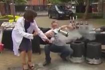 長春一輛汽車“沖出”集裝箱 懸停半空