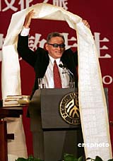 李敖重返上海母校 喜獲校方贈送的“四大禮”