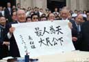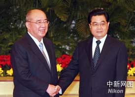 | 至1998年,在兩岸同胞的共同努力下,兩岸氣氛有所緩和。1998年10月14日,海基會董事長辜振甫先生應邀率團赴上海、北京參訪,汪道涵和辜振甫時隔五年后第二次握手,舉行“汪辜會晤 ”。 |