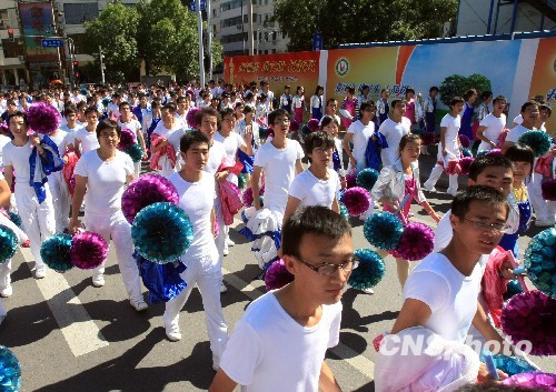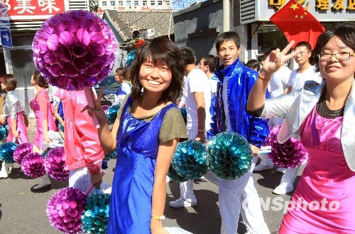 圖:黑龍江大學生揮舞國旗為祖國歡呼