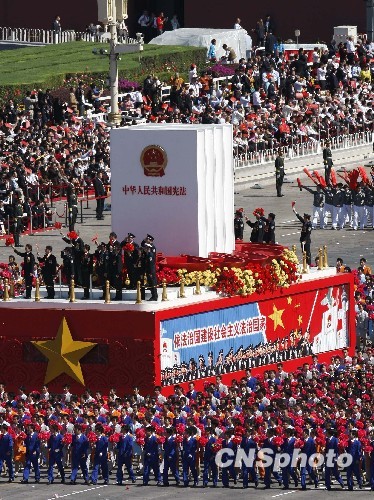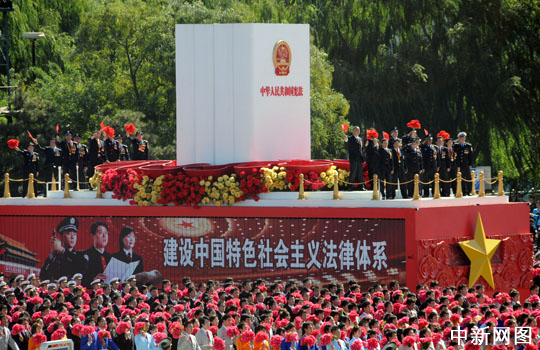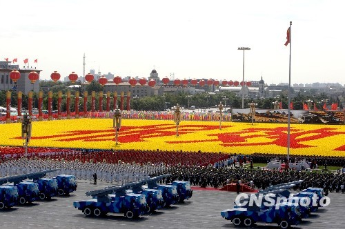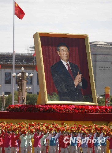 國慶閱兵:胡錦濤乘紅旗車閱兵