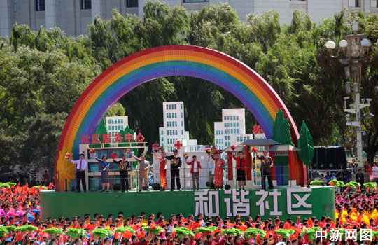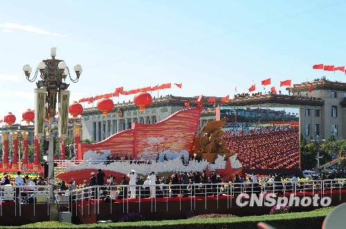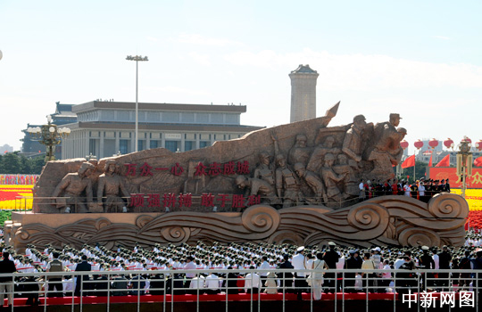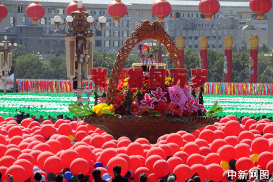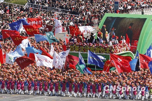 國慶慶典:西藏彩車亮相群眾游行隊伍