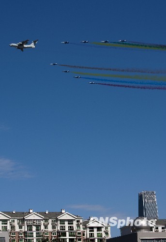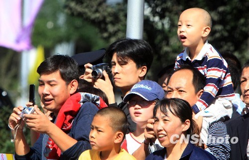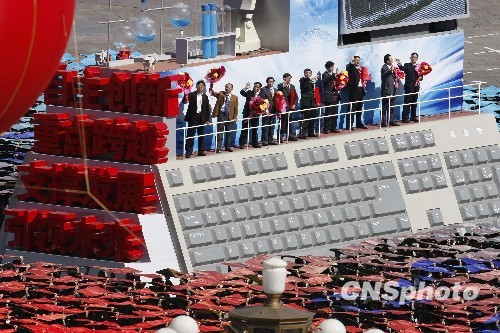 圖:劉翔、李寧等體育明星亮相游行彩車