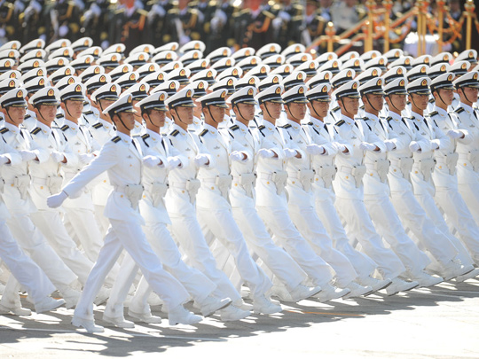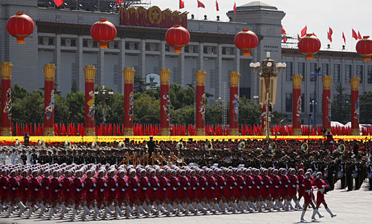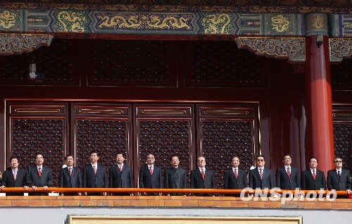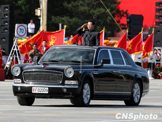 國慶閱兵:胡錦濤乘紅旗車檢閱