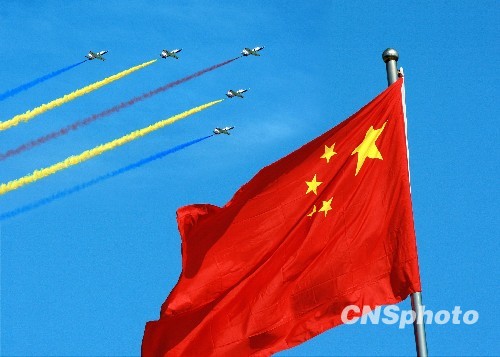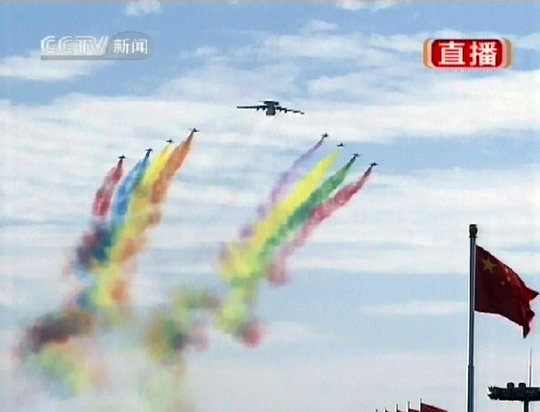 國慶大閱兵:空中梯隊飛過天安門廣場
