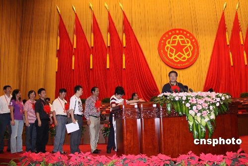胡錦濤溫家寶向受表彰的先進集體和個人代表頒獎