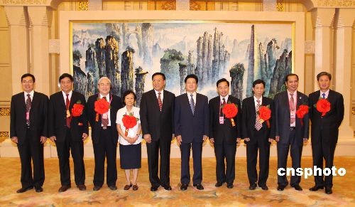圖:王兆國在人民大會堂接見全國“僑界十杰”