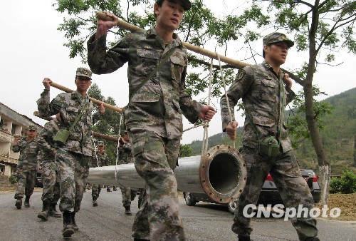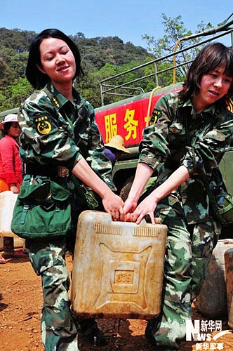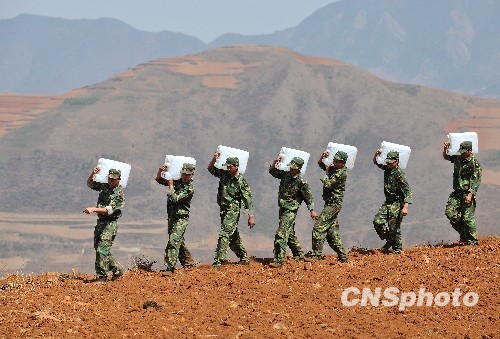 圖:解放軍出動抗旱 軍隊為民眾澆灌禾苗