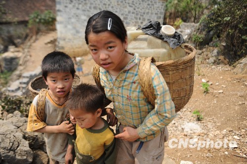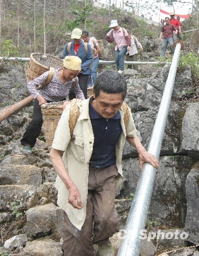 長壽之鄉巴馬大旱 6歲孩子背20斤水翻高山