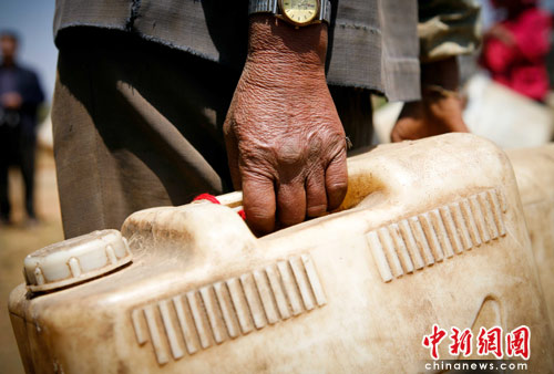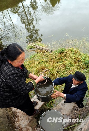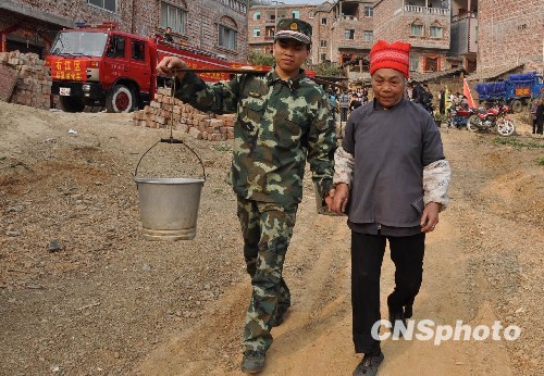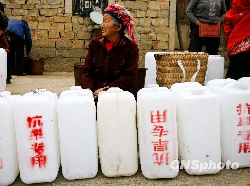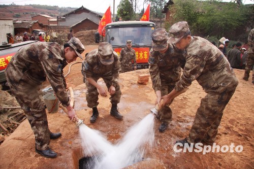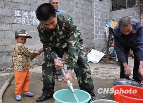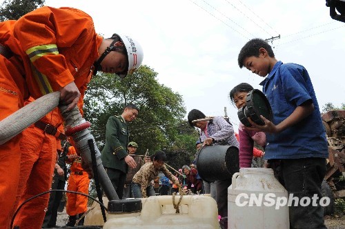 圖:消防官兵為貴州黔西南旱區百姓送水