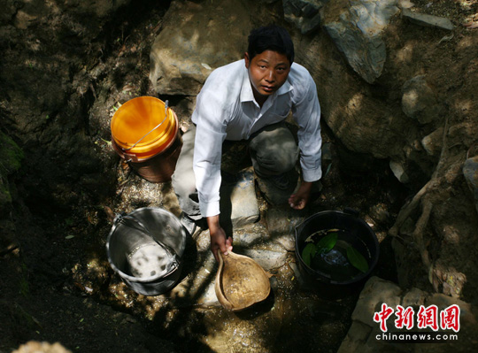 斷水半年多 廣西東蘭縣部分民眾排隊取水