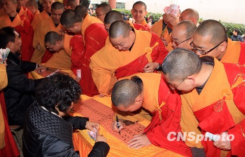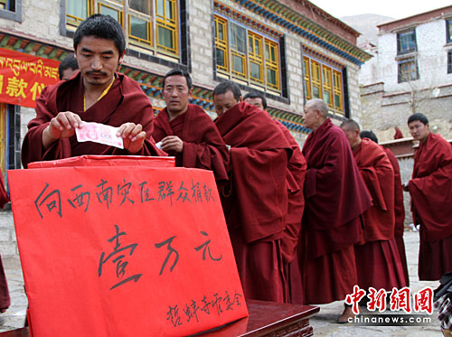圖:拉薩哲蚌寺為中國西南旱災地區捐款