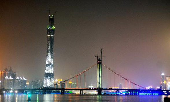 廣州電視觀光塔(又稱廣州塔、廣州新電視塔),建于廣州市海珠區赤崗塔附近地面,距離珠江南岸125米,與海心沙島及廣州新電視塔夜景珠江新城隔江相望。是一座以觀光旅游為主,具有廣播電視發射、文化娛樂和城市窗口功能的大型城市基礎設施,將為2010年在廣州召開的第十六屆亞洲運動會提供轉播服務。該塔仍然在建,由上海建工集團負責施工,預計2009年9月竣工。竣工后的廣州電視觀光塔整體高度達到610米,將取代加拿大的西恩塔成為世界第一高塔,也將成為廣州的新地標。其中塔身主體454米,天線桅桿156米。