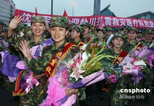 圖:沈陽軍區抗震救災醫療隊返沈