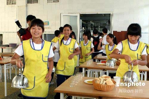 中國地震災區孩子在俄羅斯客串“服務員”