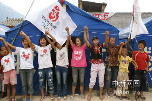 圖:重災區孩子們用歌聲祝福奧運平安