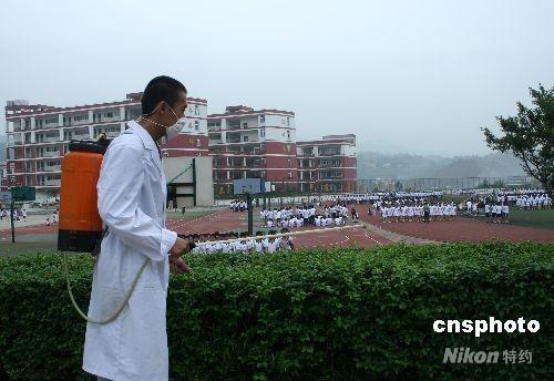 圖:四川對地震災區學校進行全面消毒