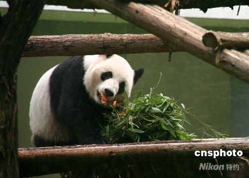 圖:四川臥龍大熊貓美靈南京過生日