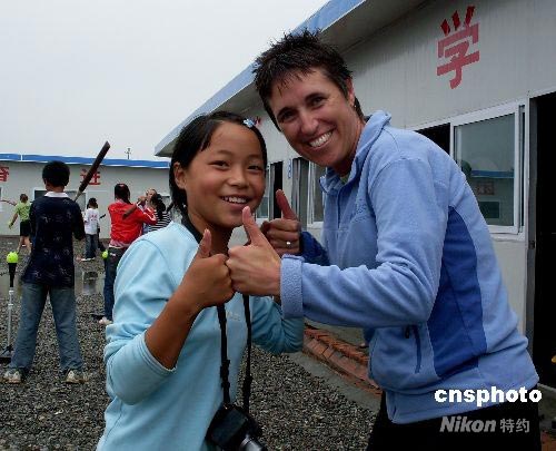 圖:美國職業女壘隊在綿竹鼓勵災區學生