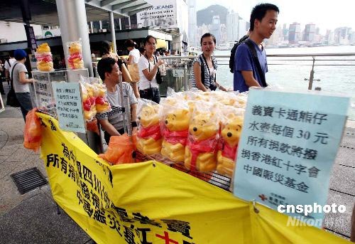 圖:香港街頭為四川災區籌款義賣