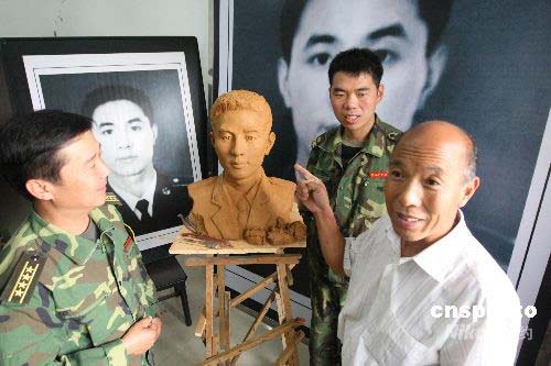 圖:解放軍塑像紀念抗震救災烈士戰友
