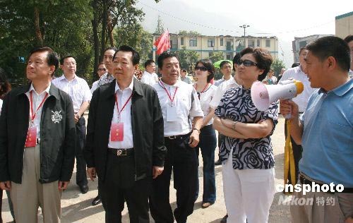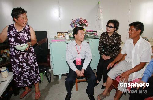 圖:李海峰考察都江堰災民安置點