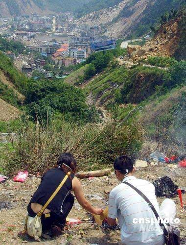 圖:都江堰民眾自發(fā)祭奠遇難親友