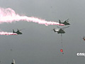 ·解放軍八一跳傘隊女隊員表演"仙女下凡"(2日)