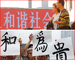“和諧社會(huì)”是中共中央提出的“和”字的一個(gè)面向,包括“世界的和平”,“社會(huì)的和諧”和“兩岸的和解”。
