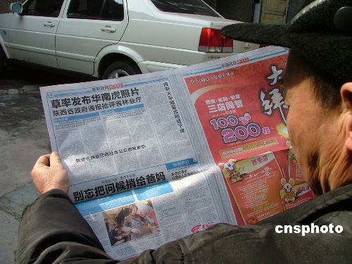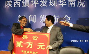 10月12日,陜西省林業廳宣布陜西發現華南虎,并公布據稱為陜西安康市鎮坪縣城關鎮文采村村民周正龍2007年10月3日拍攝到的華南虎照片。