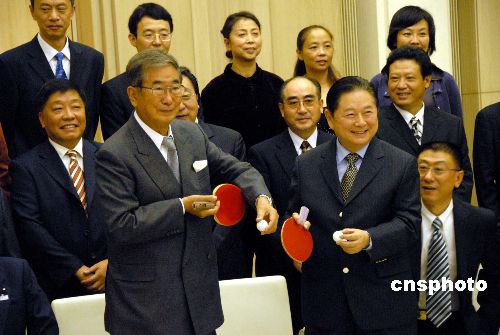 10月26日下午,東京都知事石原慎太郎在東京市政大廈會(huì)見正在日本訪問的中國(guó)乒協(xié)主席徐寅生及其訪日?qǐng)F(tuán)一行20人。徐寅生一行應(yīng)日本乒協(xié)的邀請(qǐng)10月25日抵達(dá)東京開始對(duì)日本進(jìn)行一周訪問,代表團(tuán)成員包括莊則棟、曹燕華等10多名國(guó)手。石原慎太郎說,在日中邦交正常化35周年之際,在東京見到中國(guó)的著名乒乓選手非常榮幸。石原希望中國(guó)支持東京申辦2016年夏季奧運(yùn)會(huì),通過體育交流促進(jìn)中日關(guān)系。中新社發(fā) 段躍中 攝
