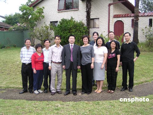中國國務院僑務辦公室副主任馬儒沛(左五)三日在悉尼與風華中文學校老師與家長代表座談后,與他們合影。中新社發 葛明 攝