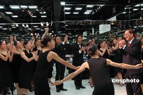 圖為唐家璇受到該團全體團員熱烈、隆重的歡迎。