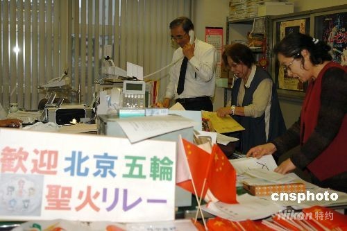 4月24日下午,長野縣日中友好協會辦公室內工作人員在為迎接圣火做最后的準備工作。長野縣日中友好協會會員近萬名,遍及全縣各個地區,是日本影響力最大的日中友好協會之一。為了迎接北京奧運圣火的到來,他們做了大量細致的籌備工作。中新社發 朱沿華 攝