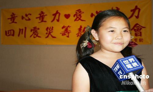 美國洛杉磯當(dāng)?shù)貢r(shí)間5月21日,“童心童力、愛心接力”四川賑災(zāi)籌款音樂會(huì)新聞發(fā)布會(huì)在美國洛杉磯舉行,6位小演奏家(國際鋼琴比賽冠軍)登臺獻(xiàn)藝,所籌款項(xiàng)將全部捐獻(xiàn)給中國地震災(zāi)區(qū)。中新社發(fā) 金立冬 攝